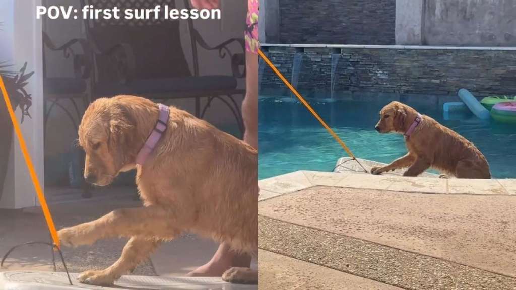 While these activities may seem ambitious at first, they often begin with simple, controlled steps. That progression is clearly visible in a video by user @itsbayleesworld, showing a Golden Retriever puppy learning to surf in a swimming pool.