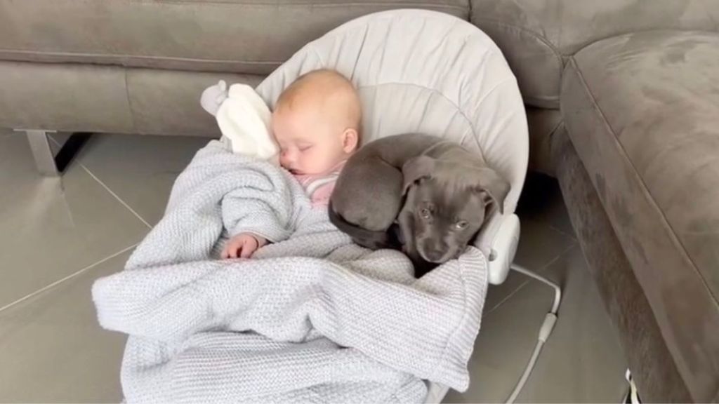The bond between babies and dogs is often precious and melts hearts. This Instagram video holds the same magic where a Staffordshire Bull Terrier (aka a Staffy) puppy wants to take a nap with her little human. Named Mila, the dog leaves her bed to join the baby in his cradle. In the caption, the owner mentions Mila’s parents while explaining the context of the clip. It reads, “One of my favourite clips. Boo & Tommys girl Mila our blue staffy puppy making herself at home and climbing in the baby bouncer.”