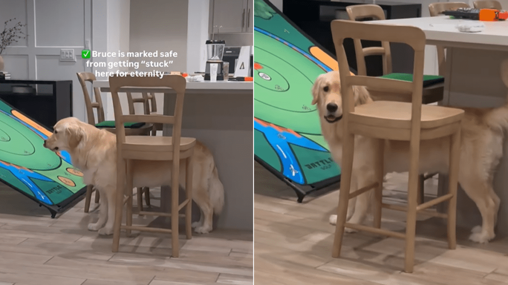 Golden Retrievers are one of the sweetest pups, and sometimes their innocent acts leave everyone laughing. Case in point, this video on @dropitbruce that shows “a little mischievous but generally the goodest boy,” Bruce getting stuck behind the chair.