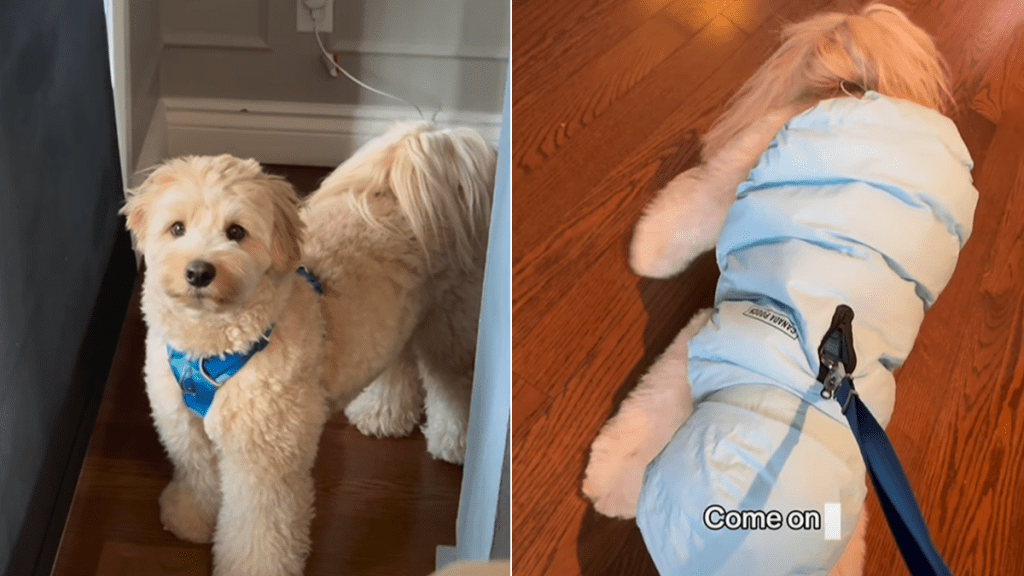 A dog-as-a-toddler reel is making winter walks look like a negotiation. In this Dog toddler video, Louie, a doodle, decides his coat is a hard no. He watches his owner reach for it, then slips away like he never heard her. She keeps calling him over, but he keeps disappearing from view. The punchline lands outside, when she has to carry him anyway. The on-screen caption sums up the standoff in four words: “He wins. Again.”